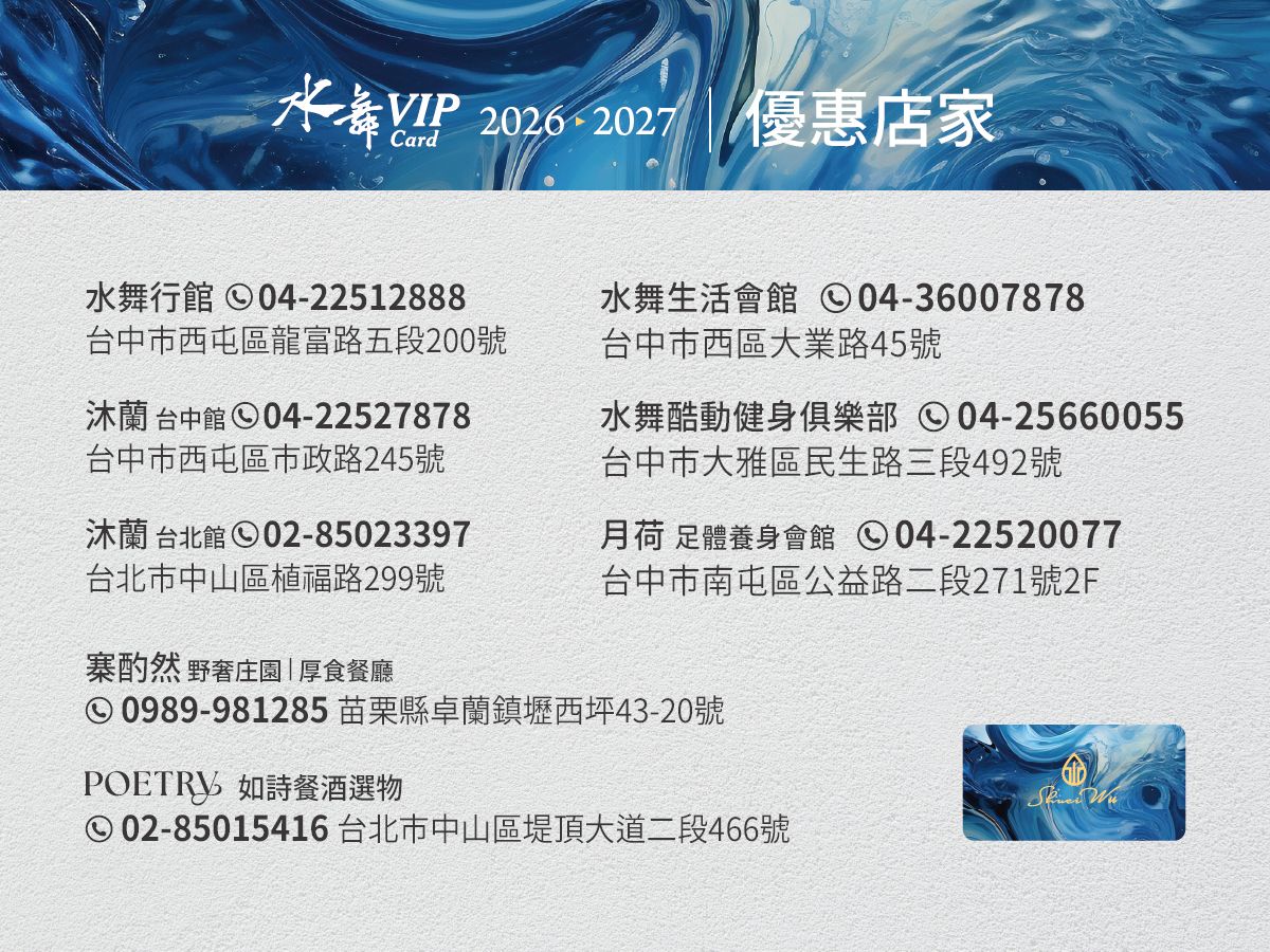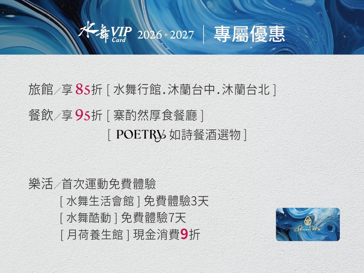 水舞卡優惠期限至:2027/12/31止